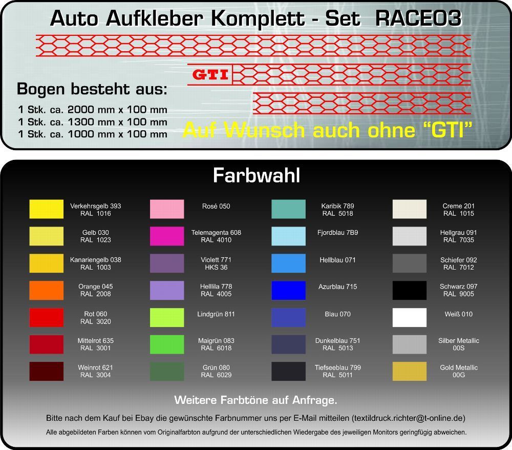 RACE03 Autoaufkleber Cartattoo Racing Zielfahne Klebefolie viele Farben Komplett