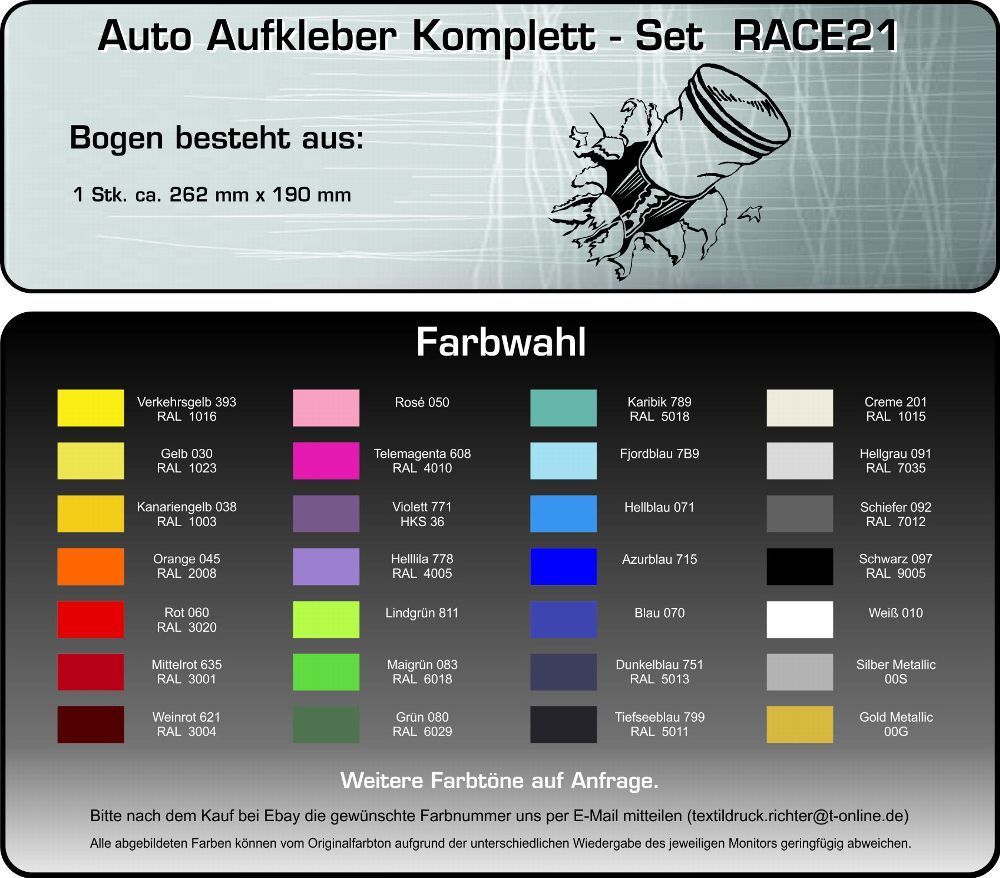 RACE21 Autoaufkleber Cartattoo Racing Kolben Streifen Folie viele Farben Set