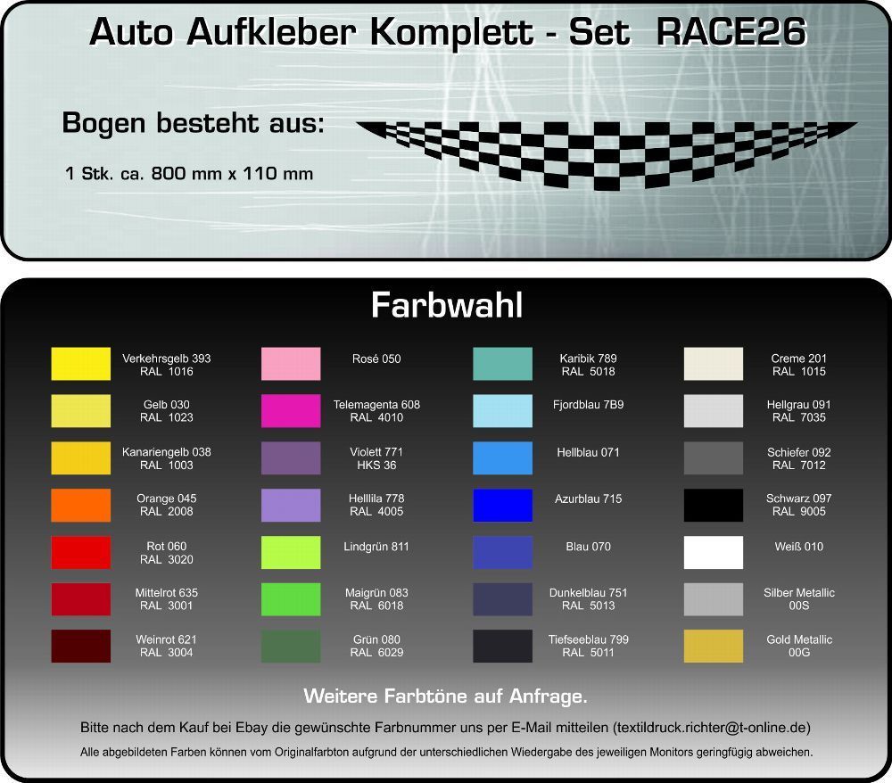 RACE26 Autoaufkleber Cartattoo Racing Zielfahne Klebefolie viele Farben Komplett