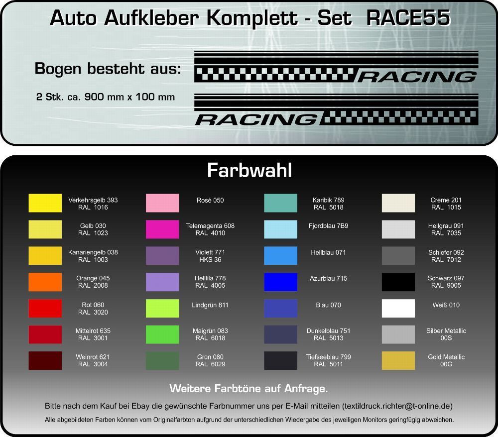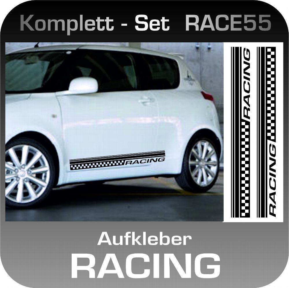 RACE55 Autoaufkleber Cartattoo Racing Zielfahne Klebefolie viele Farben Komplett
