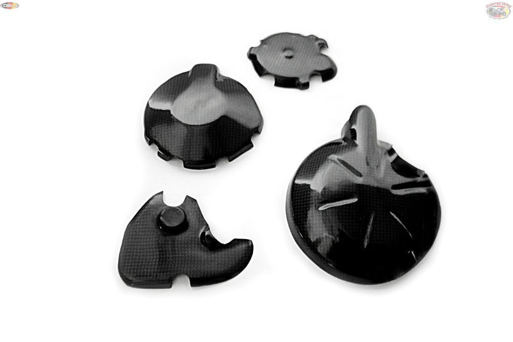Racing Carbondeckelset - NEU - für eine Kawasaki ZX6R Baujahr 2007-2011. Das Set besteht aus einem Lichtmaschinen- , einem Kupplungs- und zwei Zündungsdeckelschoner. Die Schoner werden aus einem 160 gr. Carbon-Gewebe handlaminiert gefertigt (7-lagig Carbon-Kevlar-Glasfaser). Die Oberfläche ist glatt