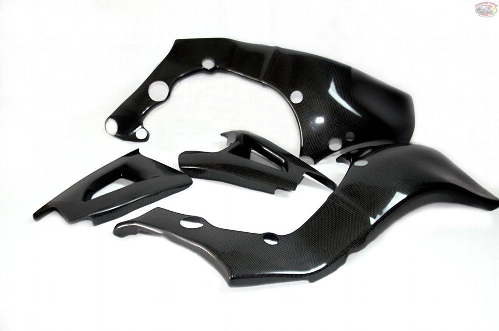 Racing Rahmen und Schwingenschonerset - jeweils links und rechts - für eine Kawasaki ZX10 Bj. 2011-2015. Die Artikel sind gefertigt (handlaminiert) aus einem 160gr. Carbon Kevlargewebe. Alle unsere Teile werden mit UV-beständigem Epoxidharz hergestellt. Die Oberfläche ist glatt und glänzend. Diesen