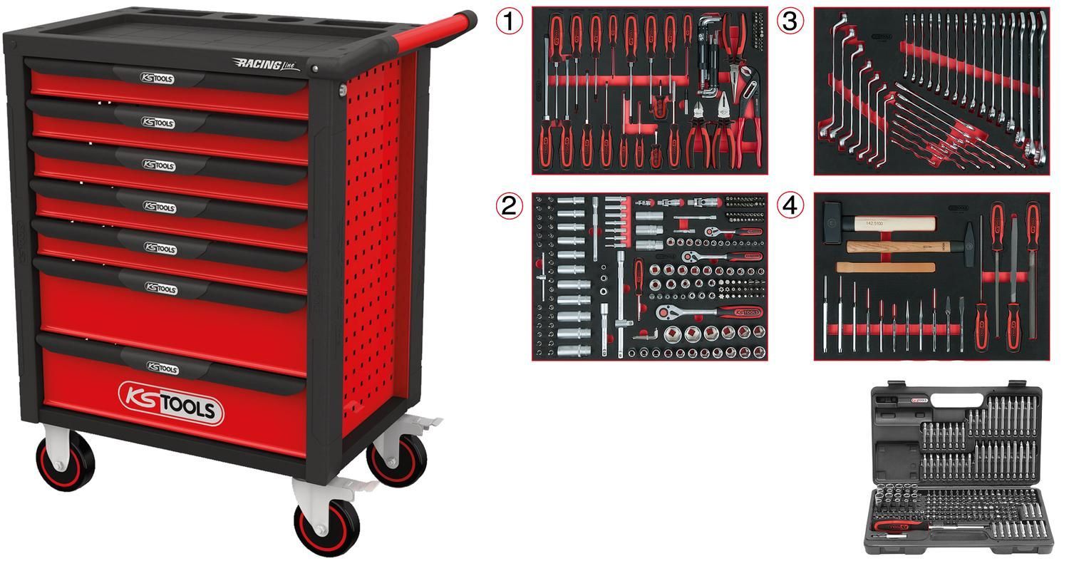 KS TOOLS RACINGline Schwarz/rot Werkstattwagen mit 7 Schubladen und 515 Premium-Werkzeugen
