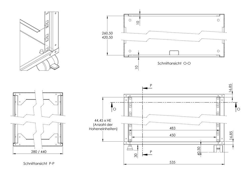 Rack Magic 3HE Offene 19"-Rack - 290mm Tiefe - schwarz - Mini Rack - Studiorack