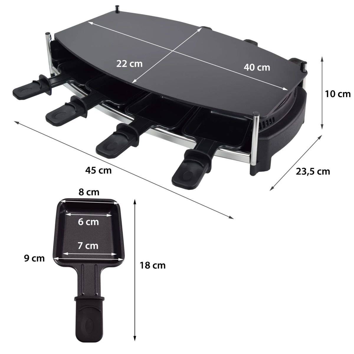 Raclette für 8 Personen | Glasplatte | 1000W | Antihaftbeschichtet