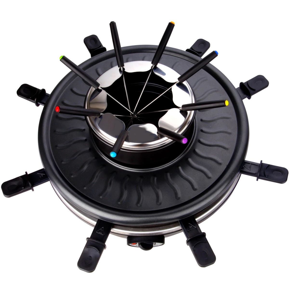 Raclette mit Fondue für 8 Personen 4 Platten | heißer Stein | 1350W | Antihaftbesch