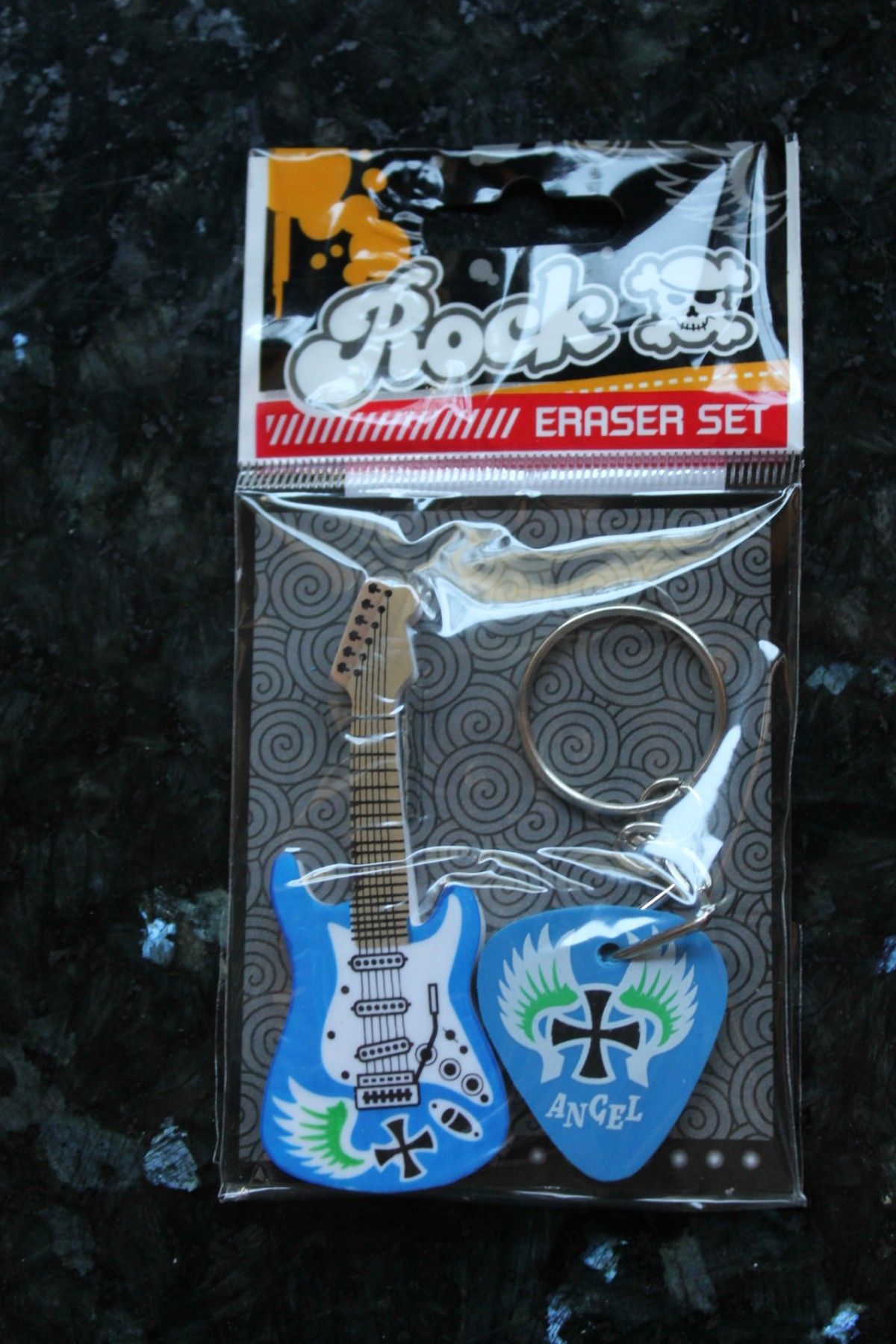 Radiergummi; Radiererset Gitarre; blau; Set mit 2 Radiergummi, Geschenkpackung