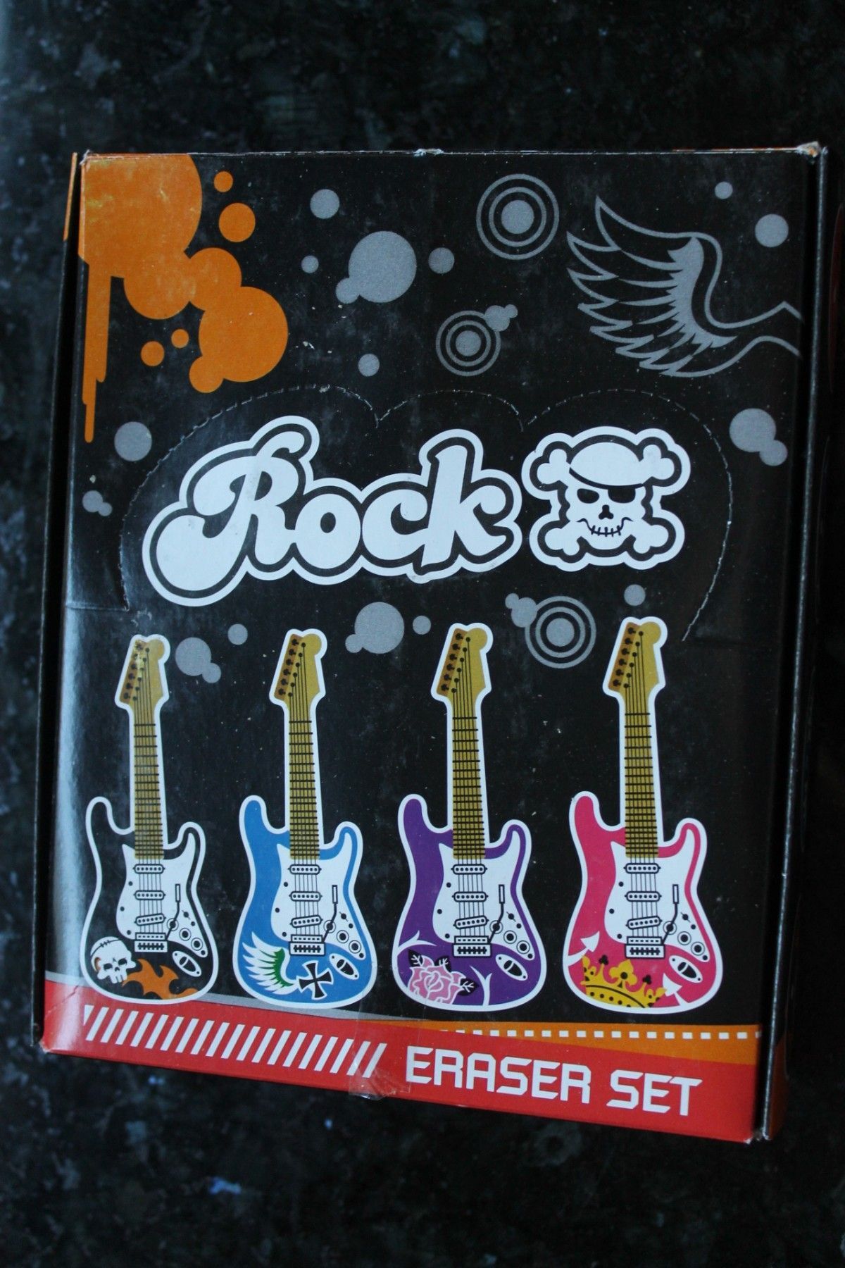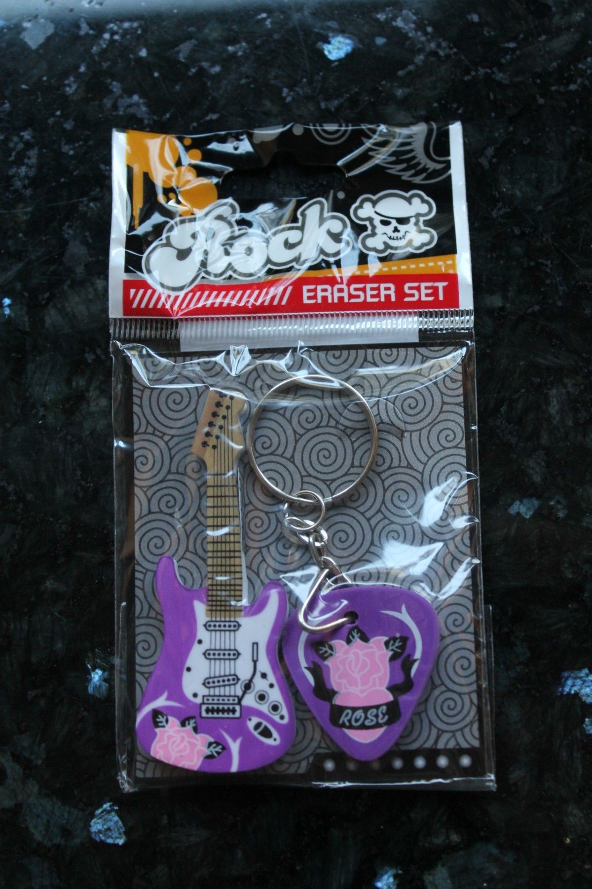 Radiergummi; Radiererset Gitarre; lila; Set mit 2 Radiergummi, Geschenkpackung