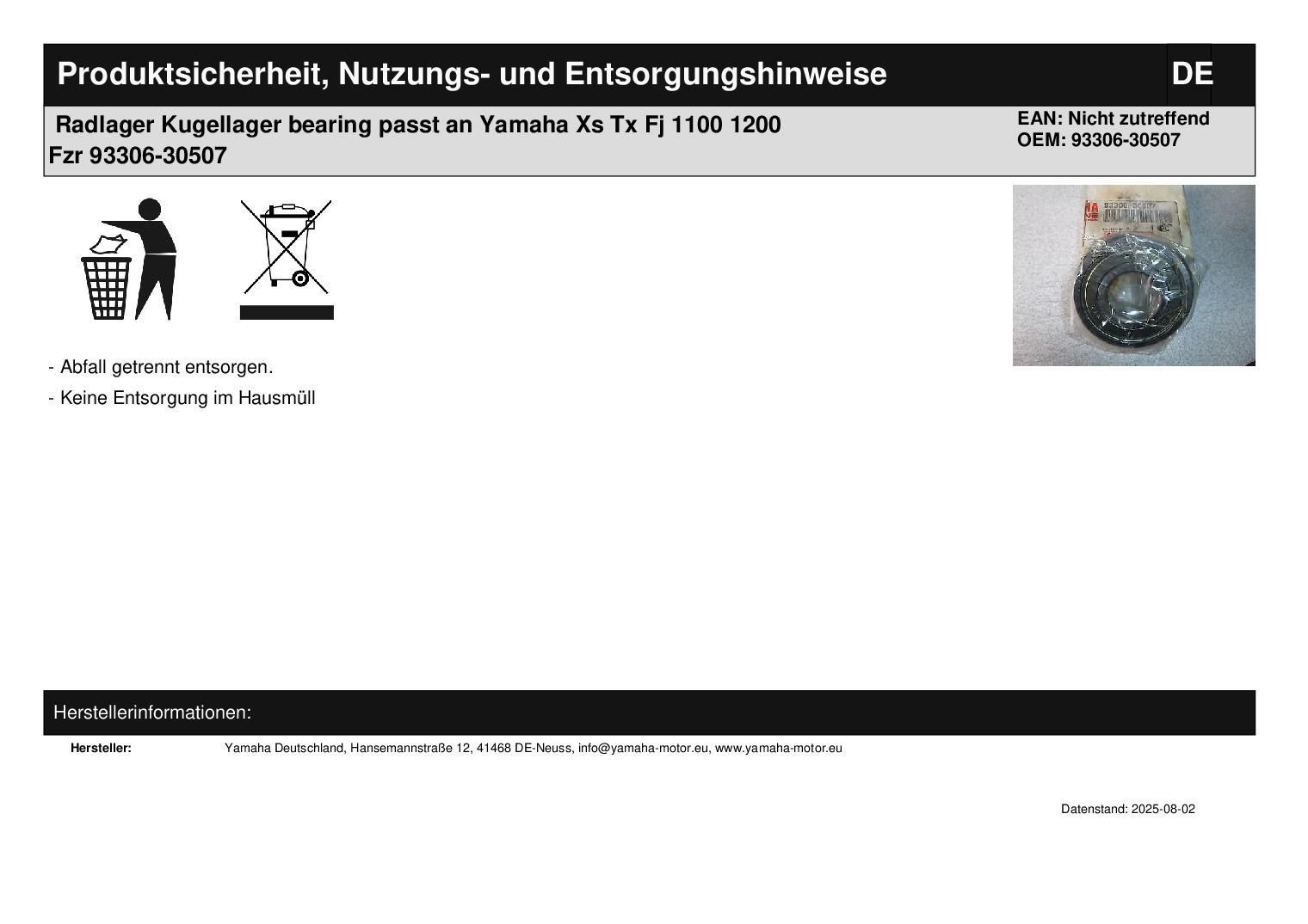 Radlager Kugellager bearing passt an Yamaha Xs Tx Fj 1100 1200 Fzr 93306-30507