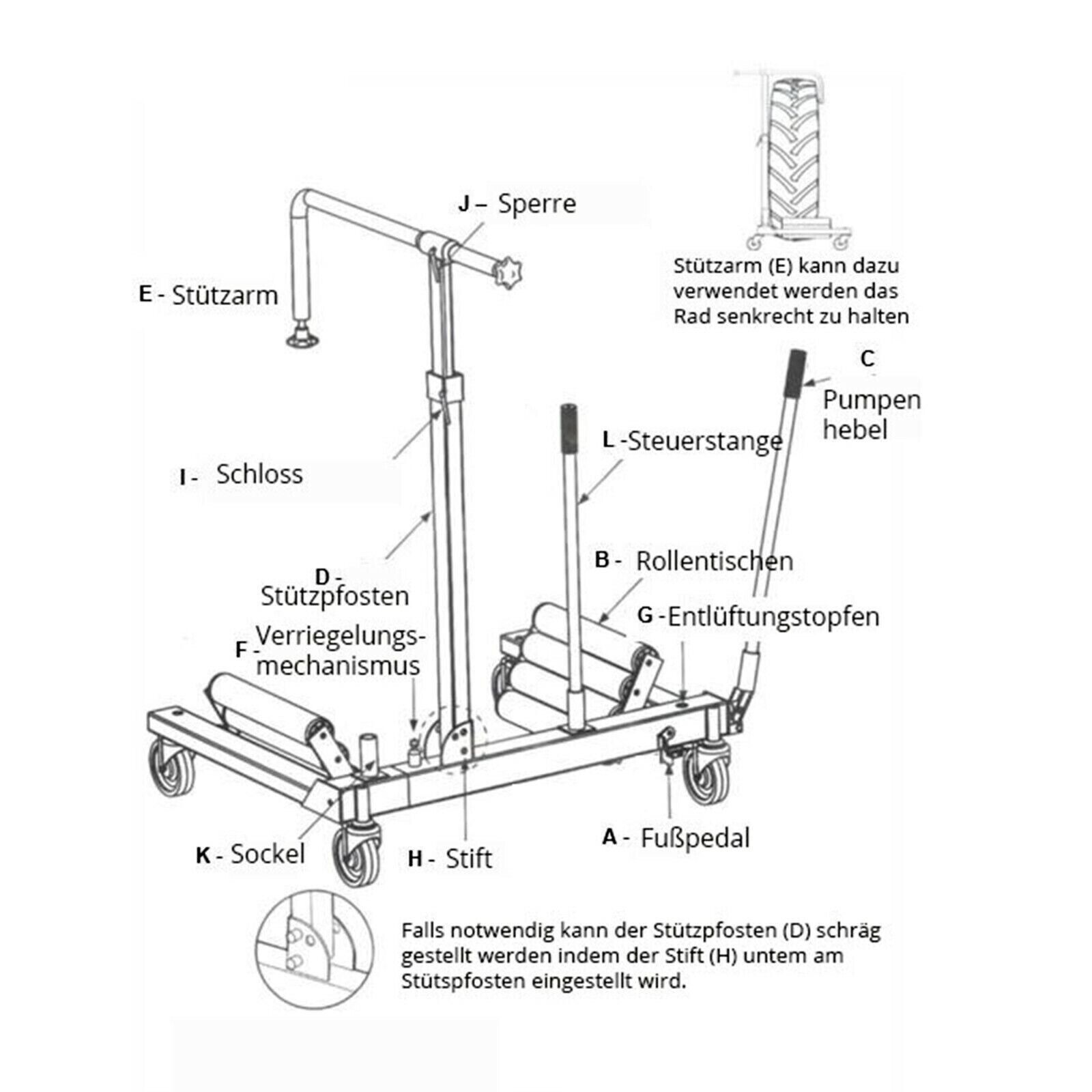 Radmontagewagen bis 1,2t Traktor LKW Rad max 120cm Reifenmontierhilfe Radwechsel