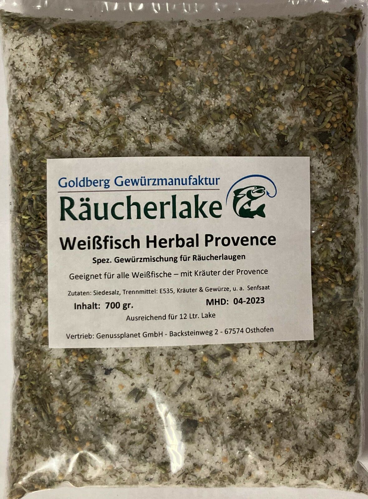 machhtml Goldberg Räucherlake ________________________________________________________________ Weißfisch Herbal Provence Spezielle milde Gewürzmischung zur Herstellung einer Räucherlake für Fisch Zutaten: Unjodiertes Speisesalz, Trennmittel E535 Kräuter der Provence, Senfsaat, Wacholderbeeren ohne G