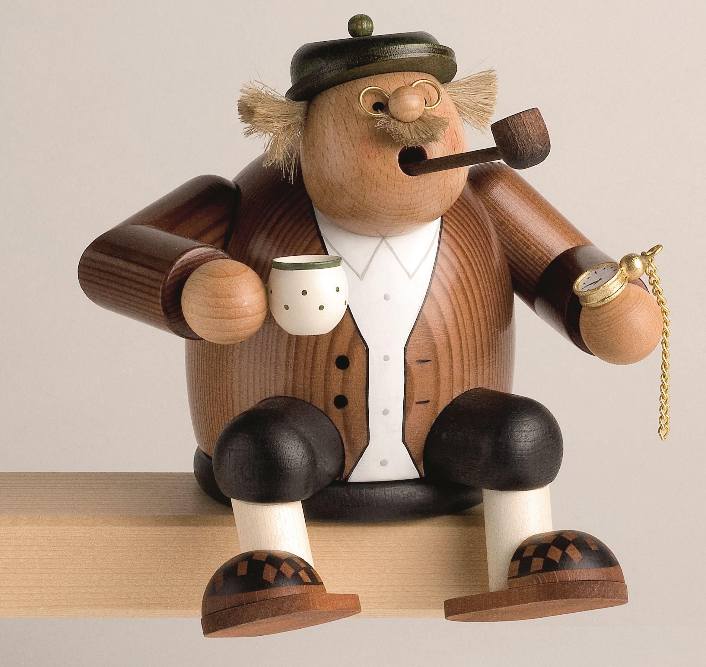 Räuchermann Kantenhocker Opa mit Kaffeetasse BxTxH= 13x11x14cm NEU Rauchen