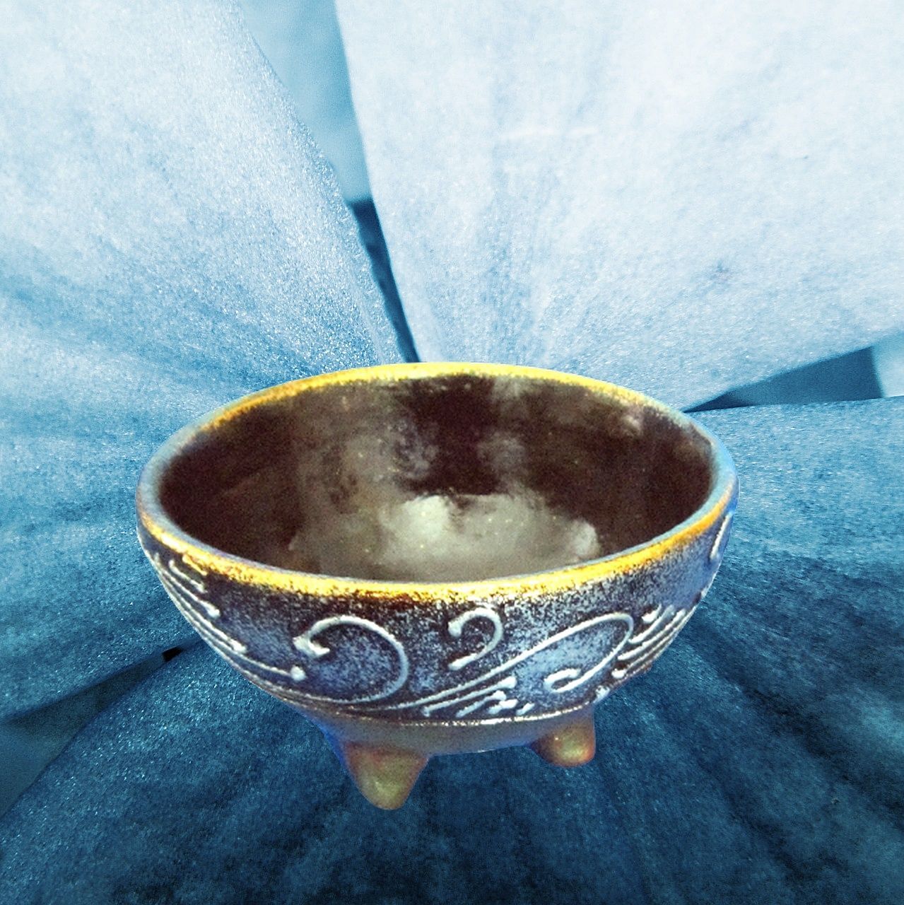 Räucherschale HEXE Keramik gold H: 4,5 cm D: 8,5 cm Handarbeit