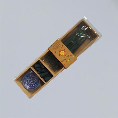 Räucherset MARINE mit Räucherstäbchen, Räucherkegel und -halter im Holzkästchen