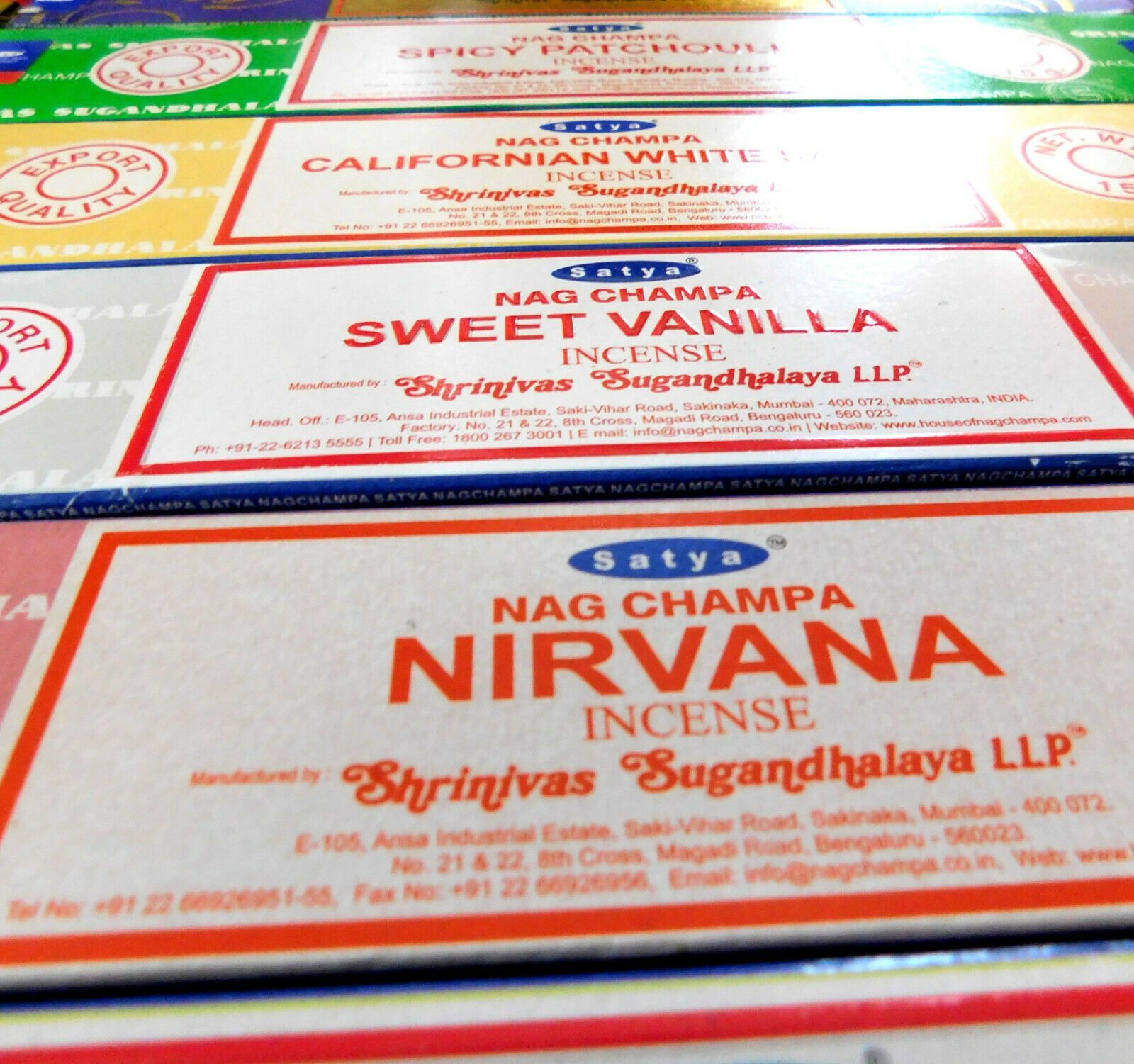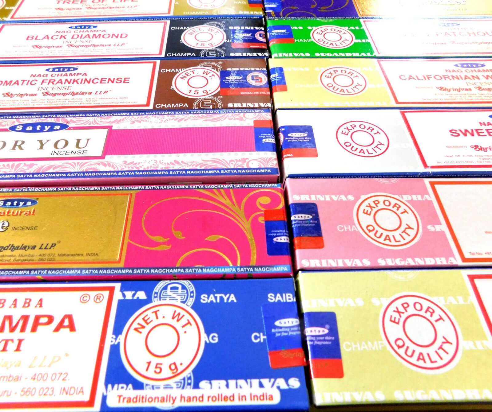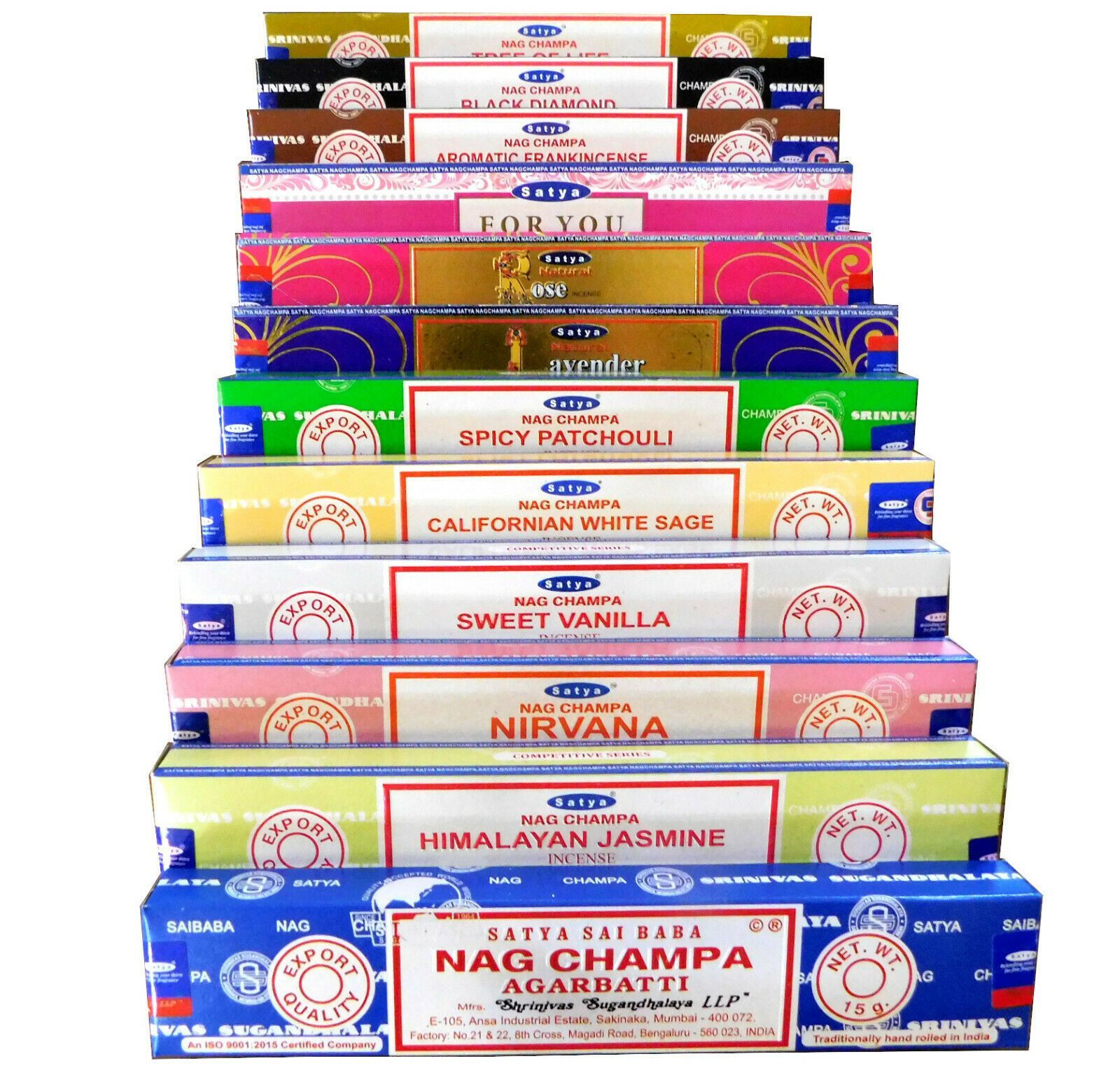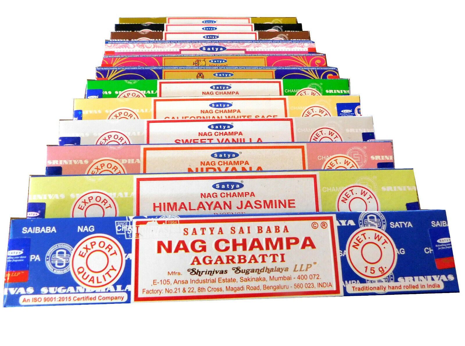 Räucherstäbchen Sparset 12x Satya Nag Champa, zufällige Düfte a 15g, Agarbatti