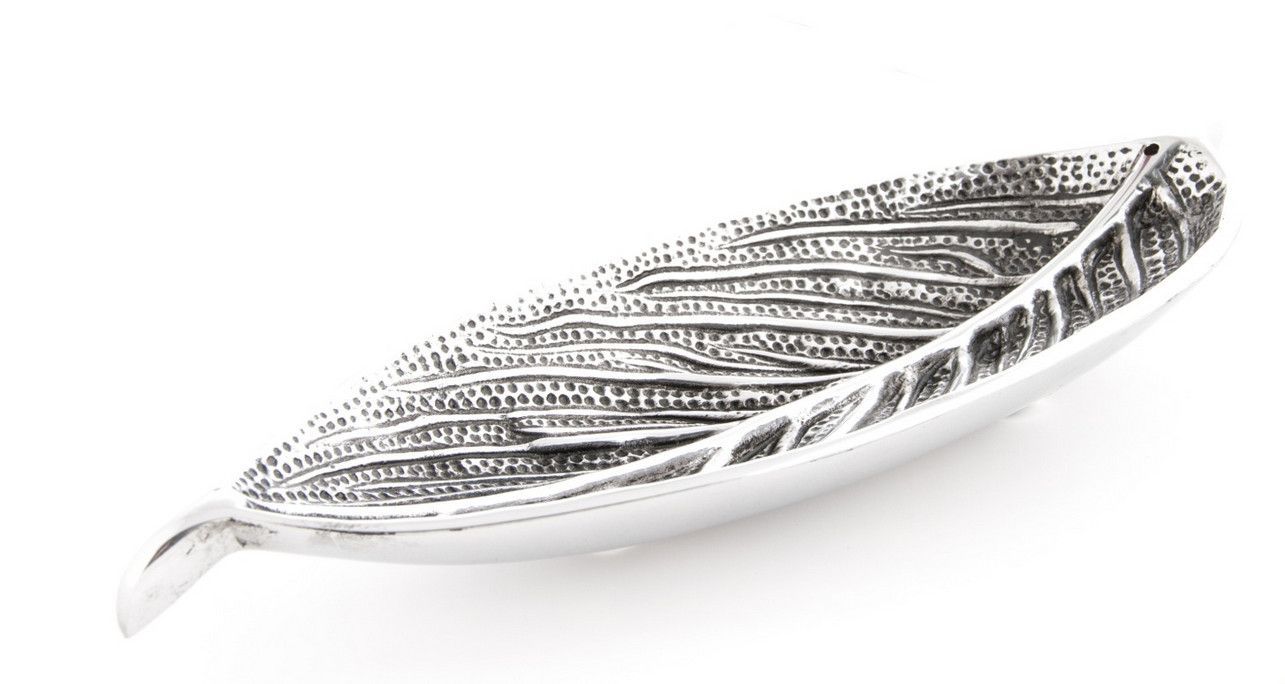 Räucherstäbchenhalter Blatt silber aus Weißmetall ca. 25 cm, KH-221