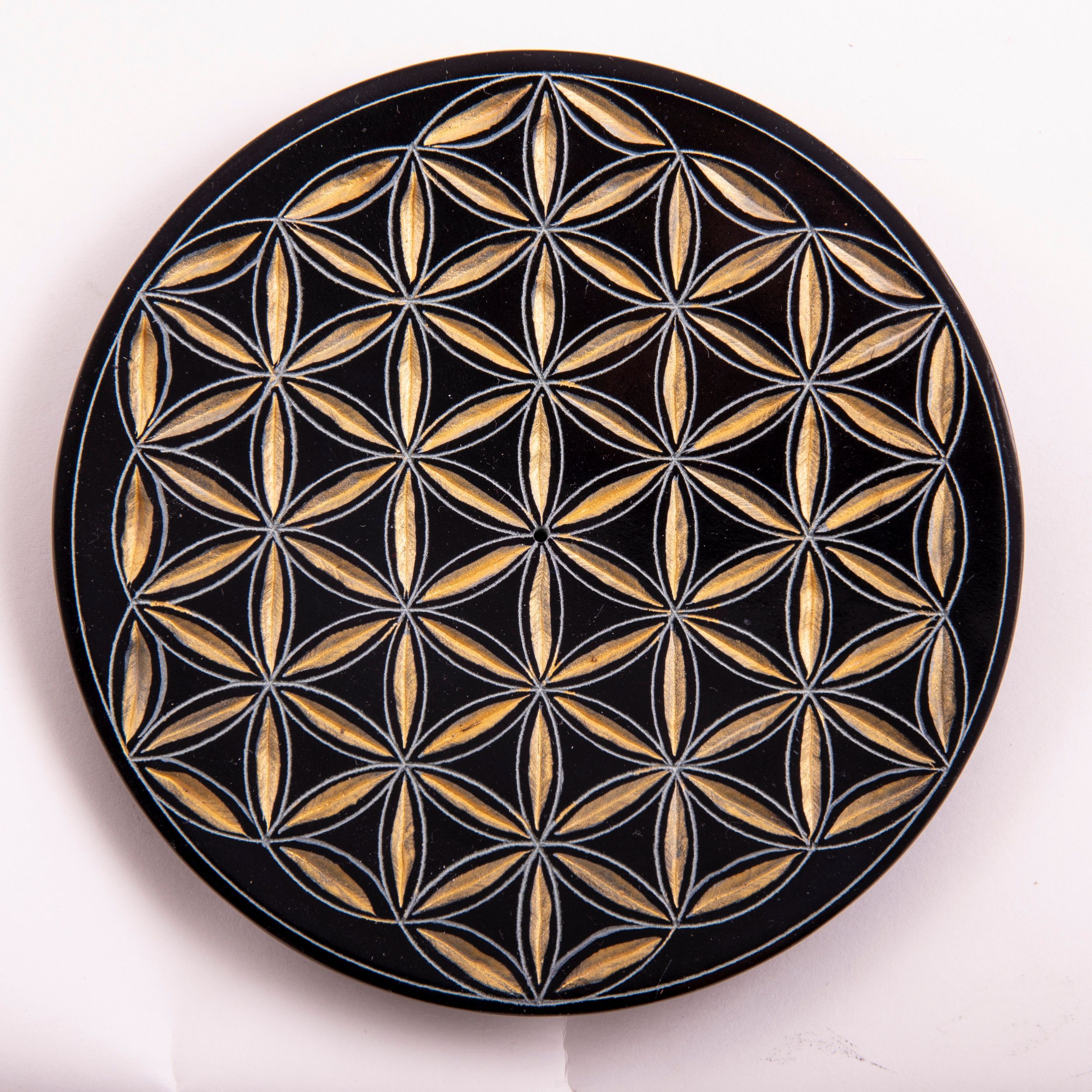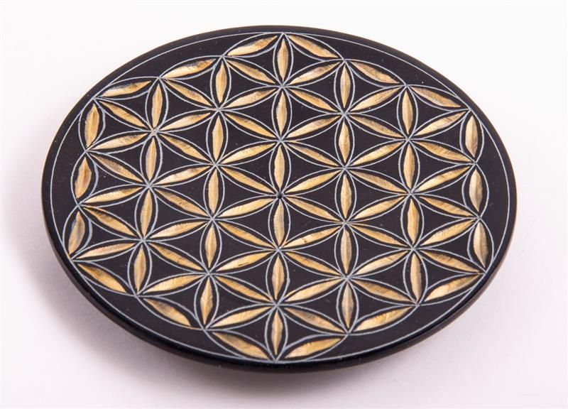 Räucherstäbchenhalter BLUME DES LEBENS Speckstein 13 cm handgraviert Teller