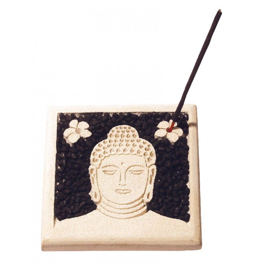 Saraswati Räucherstäbchenhalter BUDDHA Stein graviert 10 cm Räucherteller Räucherplatte