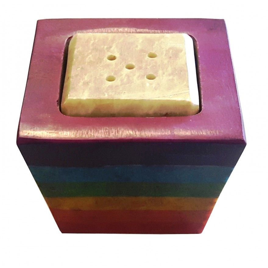 Saraswati Räucherstäbchenhalter CHAKRA CUBE Speckstein 4 x 5 cm Kerzenhalter 2 in 1