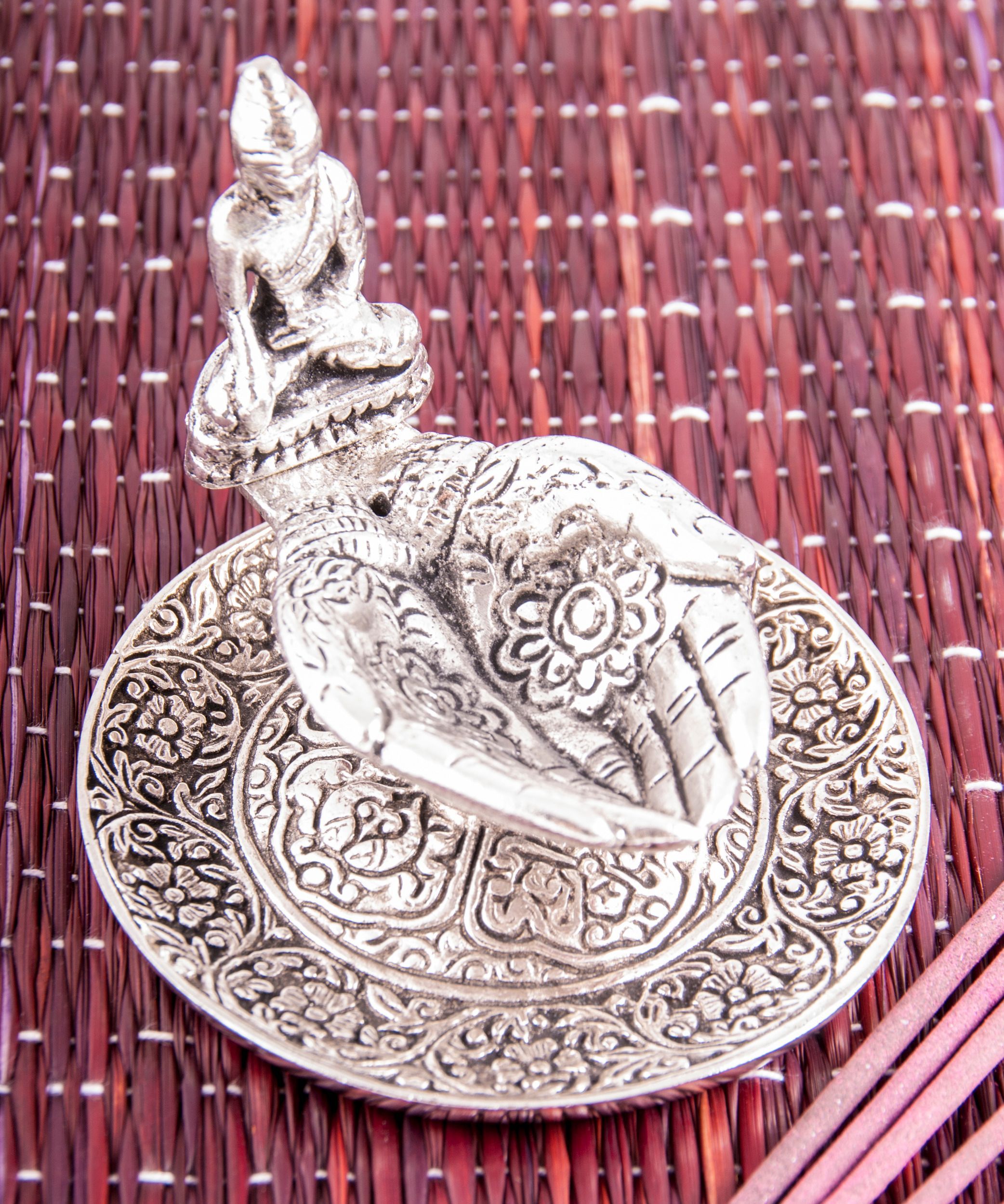 Räucherstäbchenhalter Gebende HÄNDE Weißmetall 9 cm Räucherschale Metallhalter