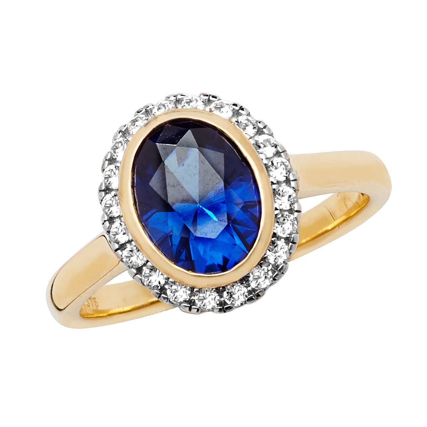 Raffinierter 9 ct/Karat Gelb Gold Damen - Solitärring mit Saphir (synth.)