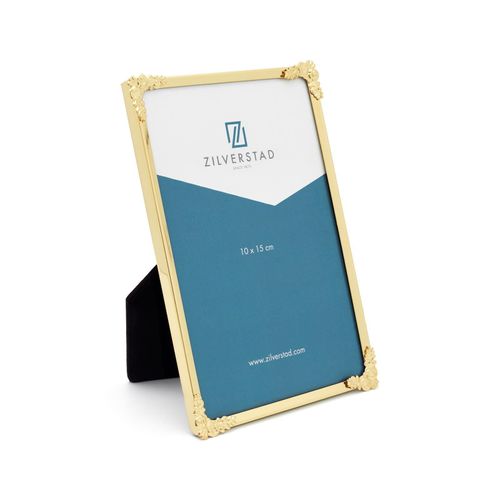 Zilverstad Rahmen Fotomaß 10 x 15 cm goldenfarbig verzierter Fotorahmen & Velours-Rückseite
