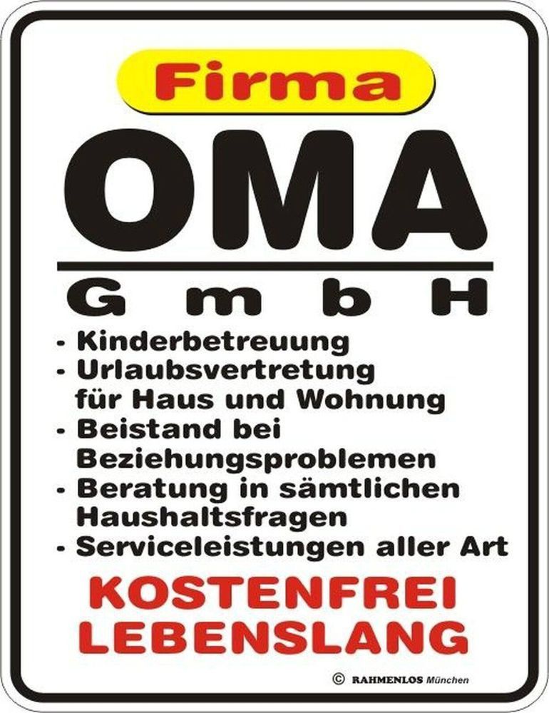 Rahmenlos Rahmenlos® Blechschild 17 x 22, Firma Oma GmbH, Werbeschild Art. 3264