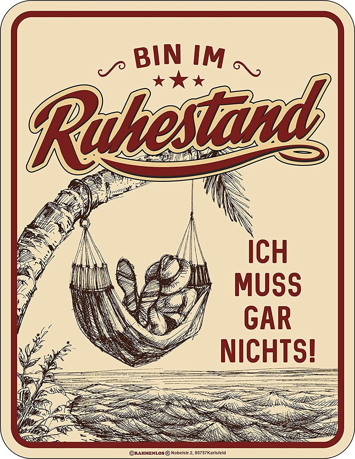 Rahmenlos Rahmenlos® Blechschild 17 x 22, Ruhestand, muss gar nichts, Werbeschild Art. 3814