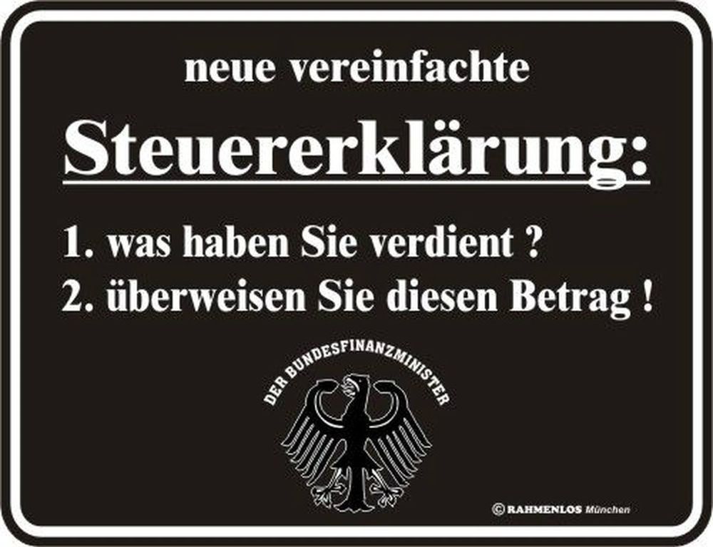 Rahmenlos Rahmenlos® Blechschild 17 x 22, Steuererklärung, Werbeschild Art. 3291