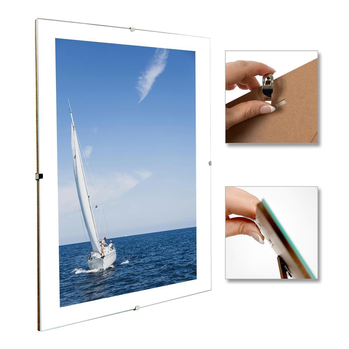 • Rahmenloser echtglas Glas Bilderrahmen 21x29,7 cm (DIN A4) Cliprahmen