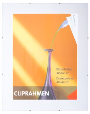 • Rahmenloser Kunstglas Plexi Bilderrahmen nach Maß 40x50 cm Cliprahmen
