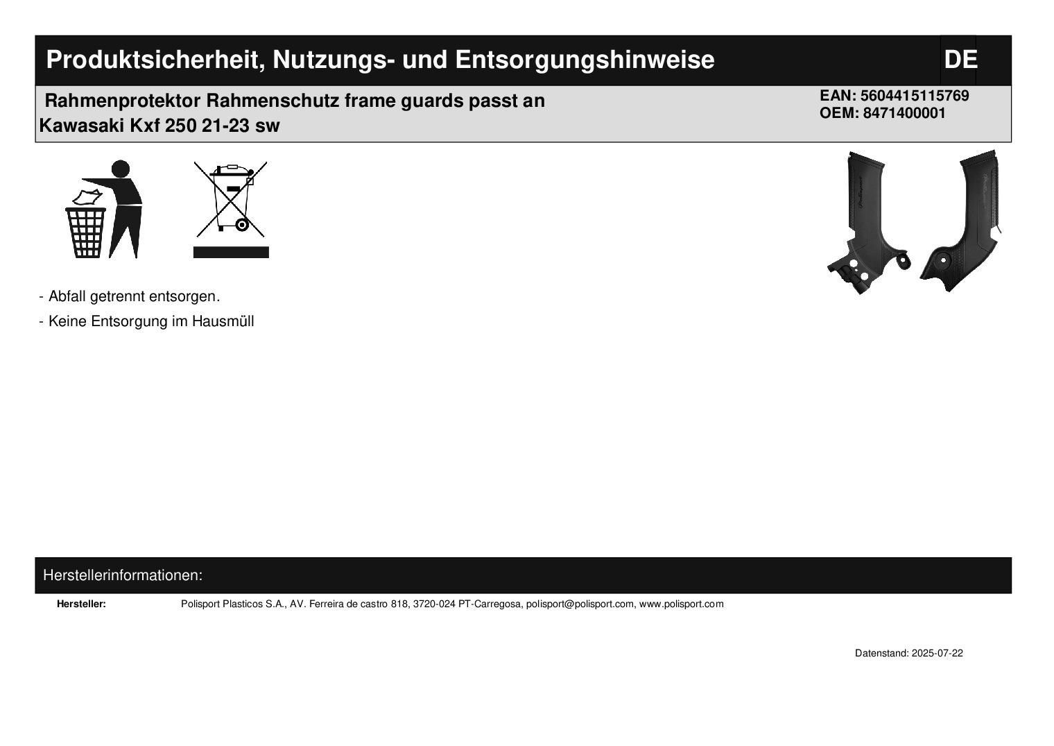 Polisport Rahmenprotektor Rahmenschutz frame guards passt an Kawasaki Kxf 250 21-24 sw