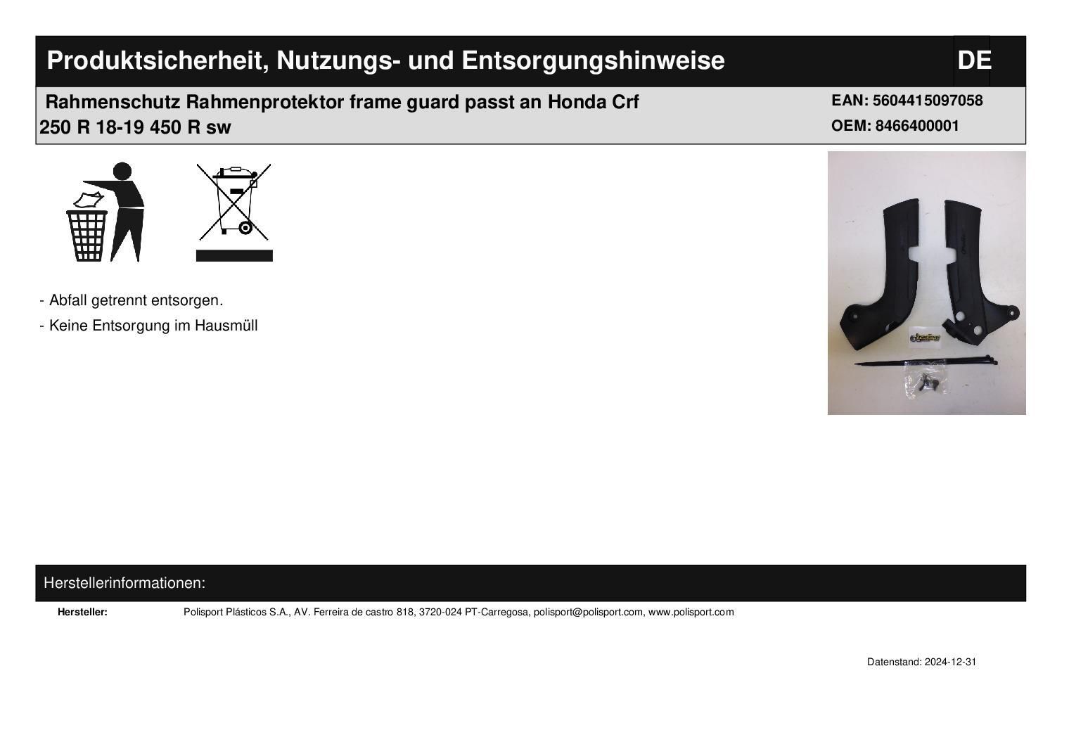 Polisport Rahmenschutz Rahmenprotektor frame guard passt an Honda Crf 250 R 18-19 450 R sw
