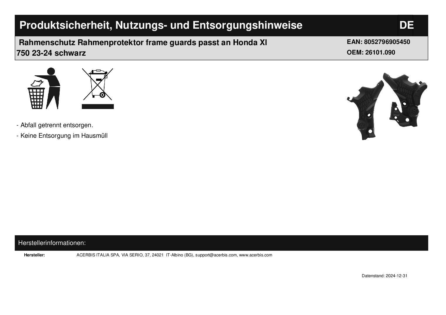 Acerbis Rahmenschutz Rahmenprotektor frame guards passt an Honda Xl 750 23-25 schwarz