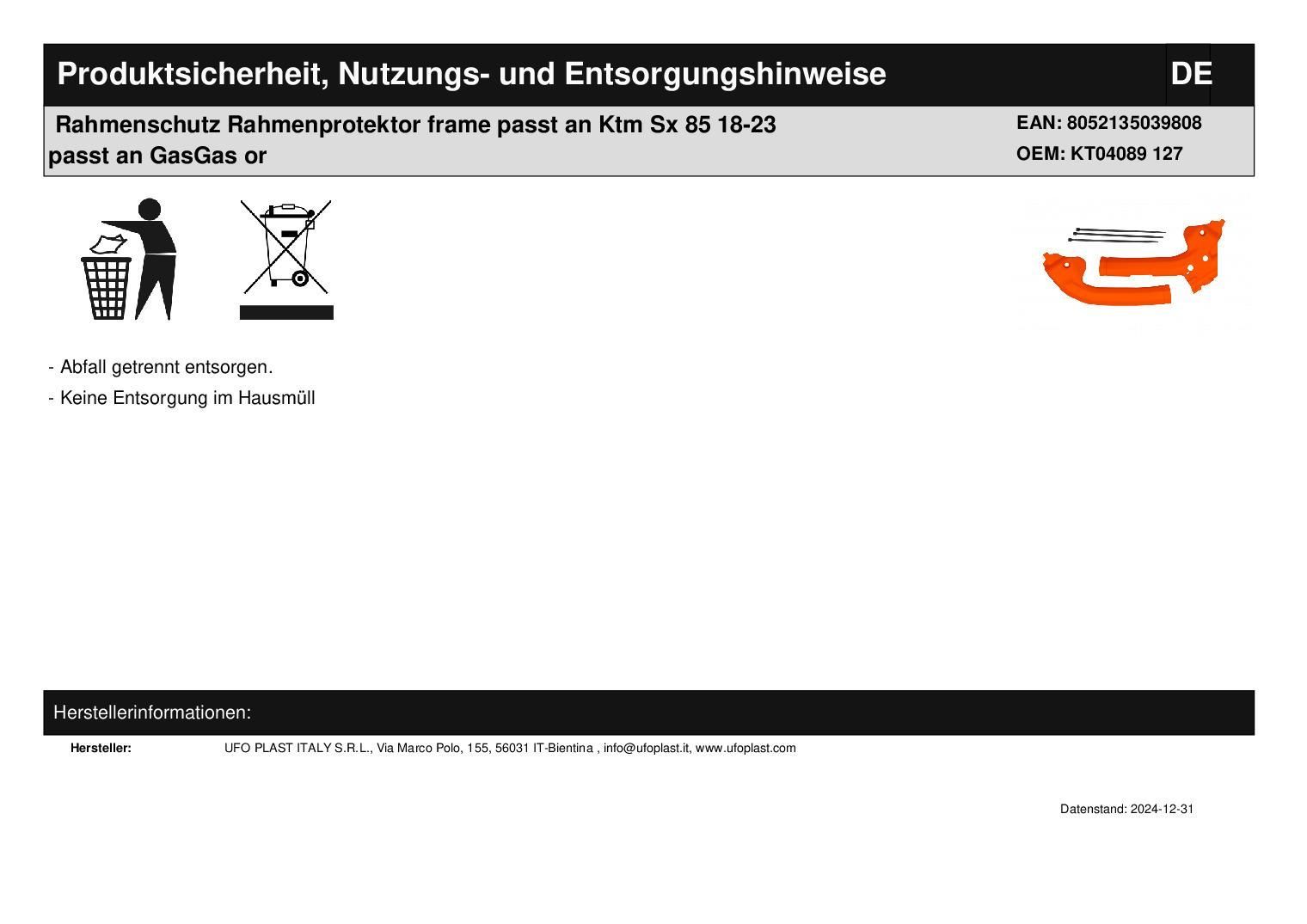 Rahmenschutz Rahmenprotektor frame passt an Ktm Sx 85 18-23 passt an GasGas or