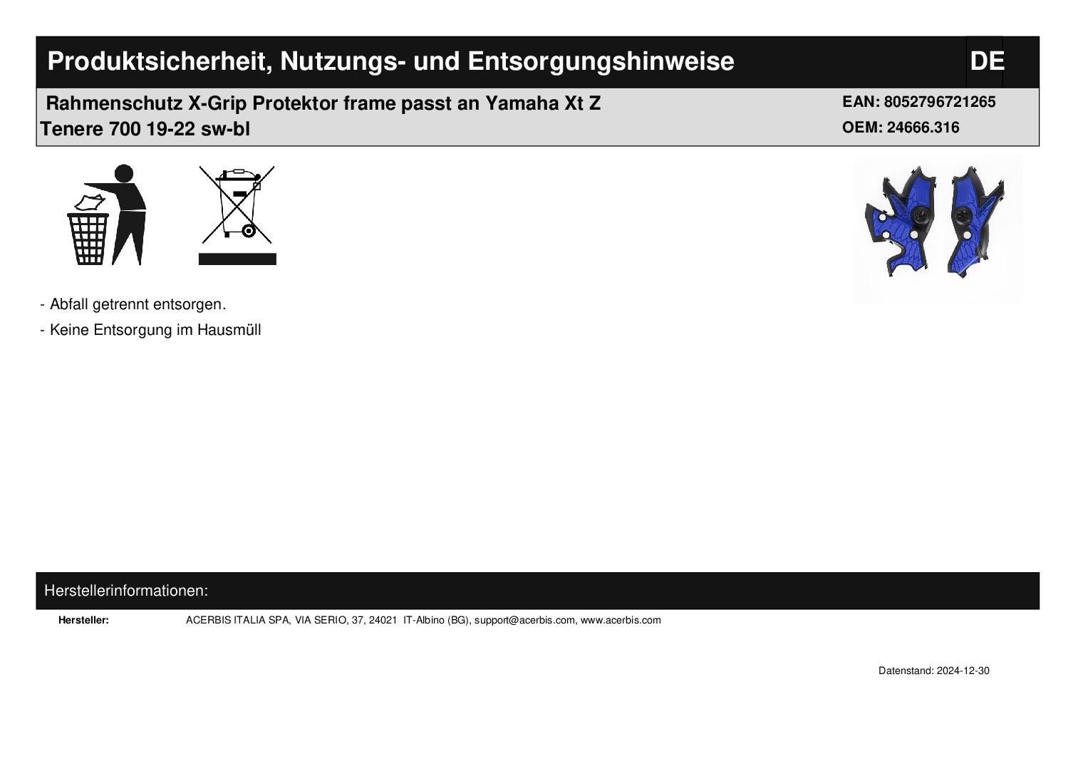 Acerbis Rahmenschutz X-Grip Protektor frame passt an Yamaha Xt Z Tenere 700 19-25 sw-bl