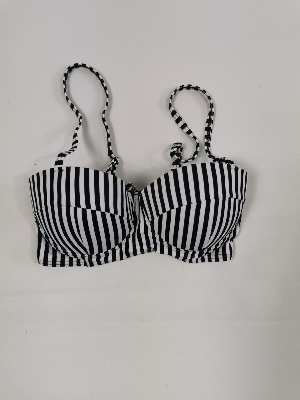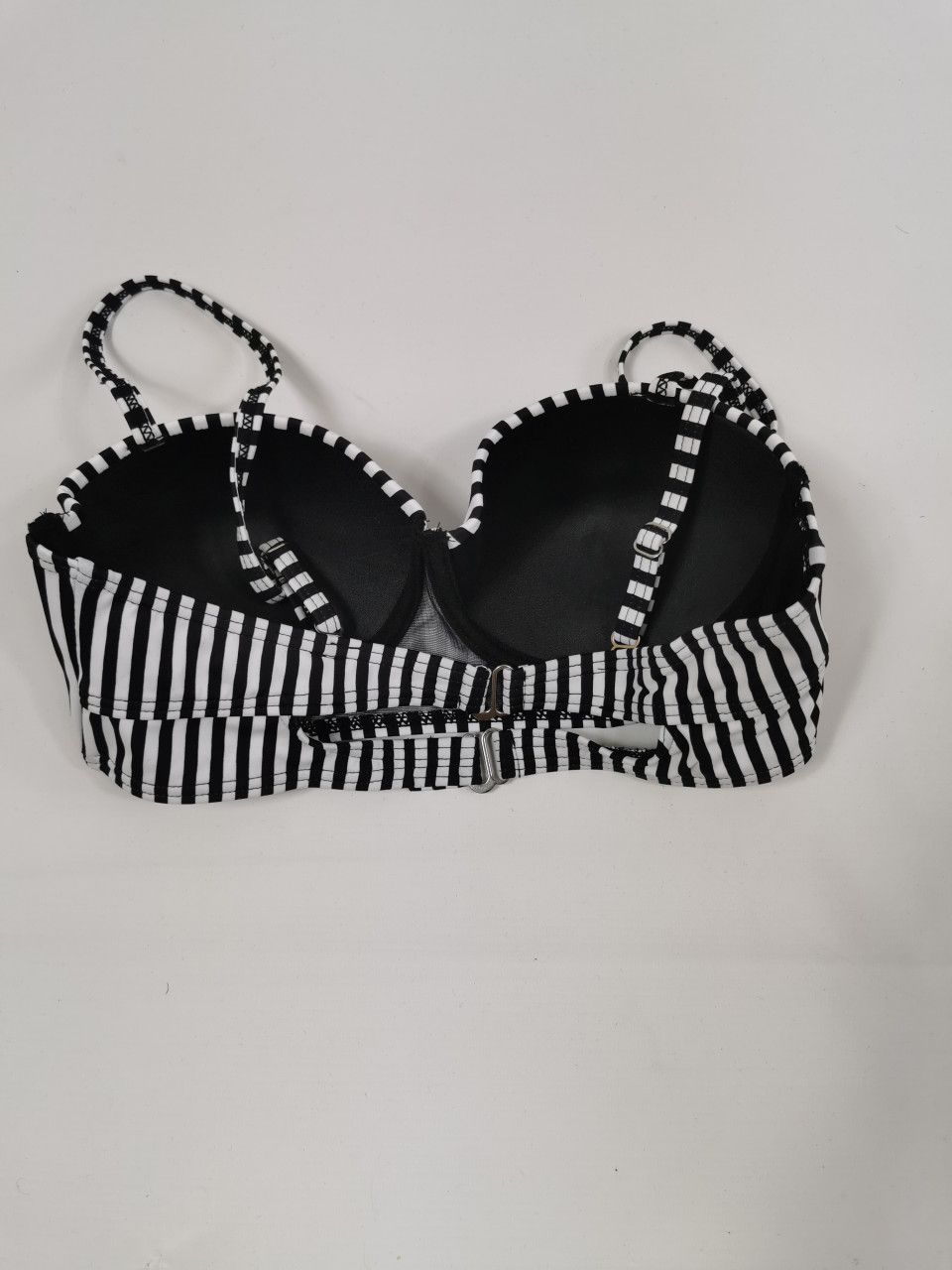 Rainbow Balconette Bügel Bikini Oberteil, schwarz / weiss gestreift, Gr. 70B