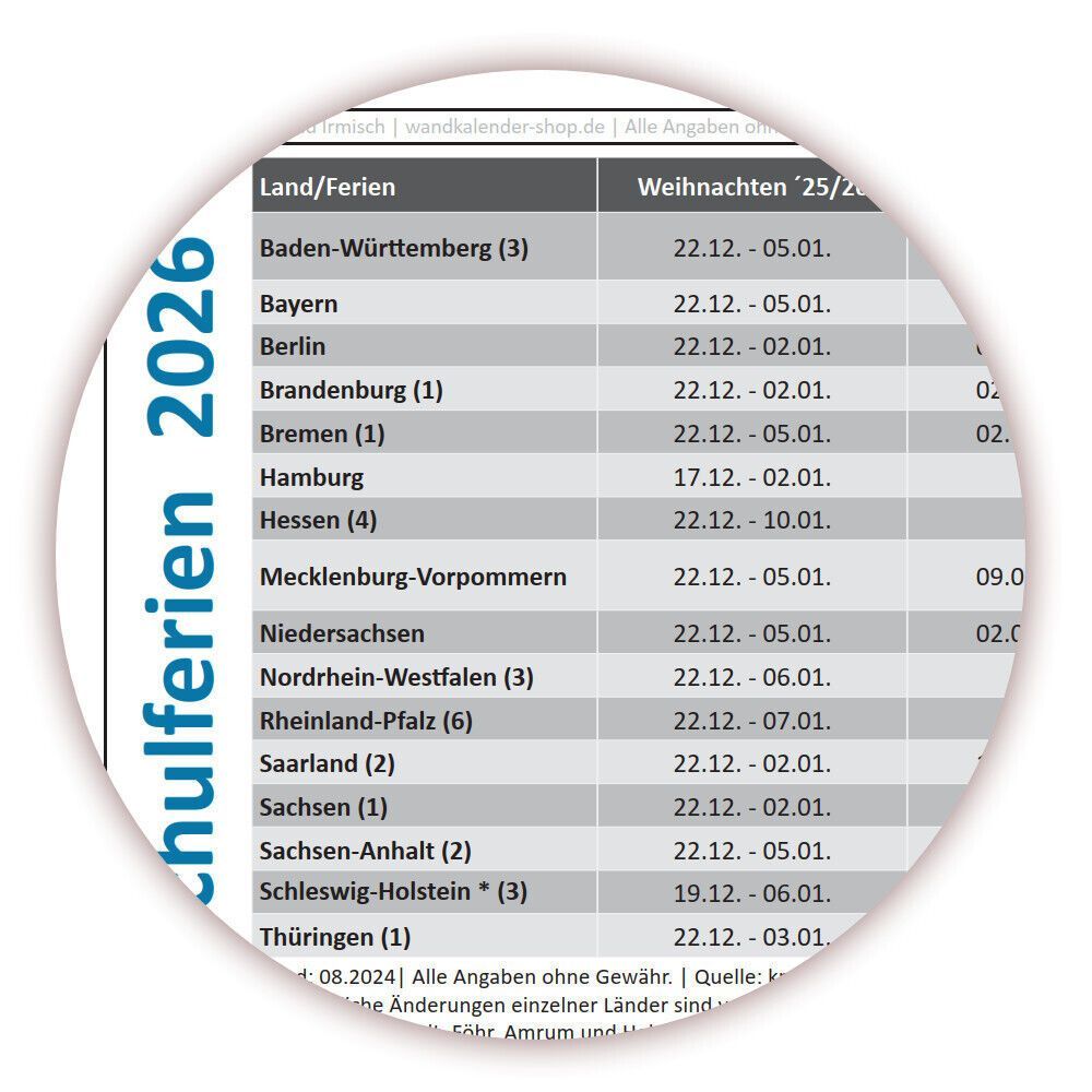 Rainbow Wandkalender DIN A1 2025 + 2026 gerollt Wandplaner Ferien & Feiertage