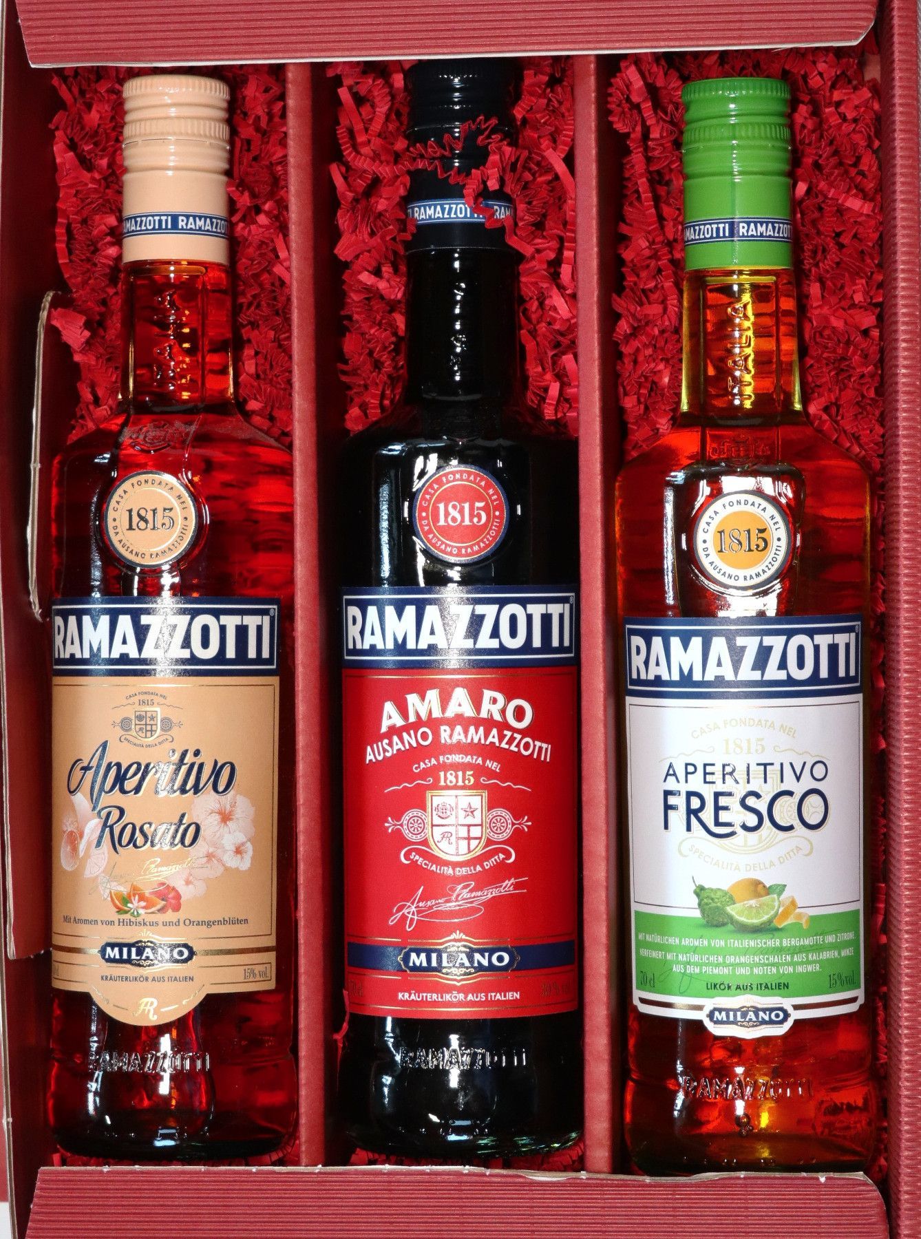 Ramazzotti Ramazzotti Amaro 30 % + Aperitivo Rosato 15 % Aperitivo Fresco 15% 0,7 L Geschenk