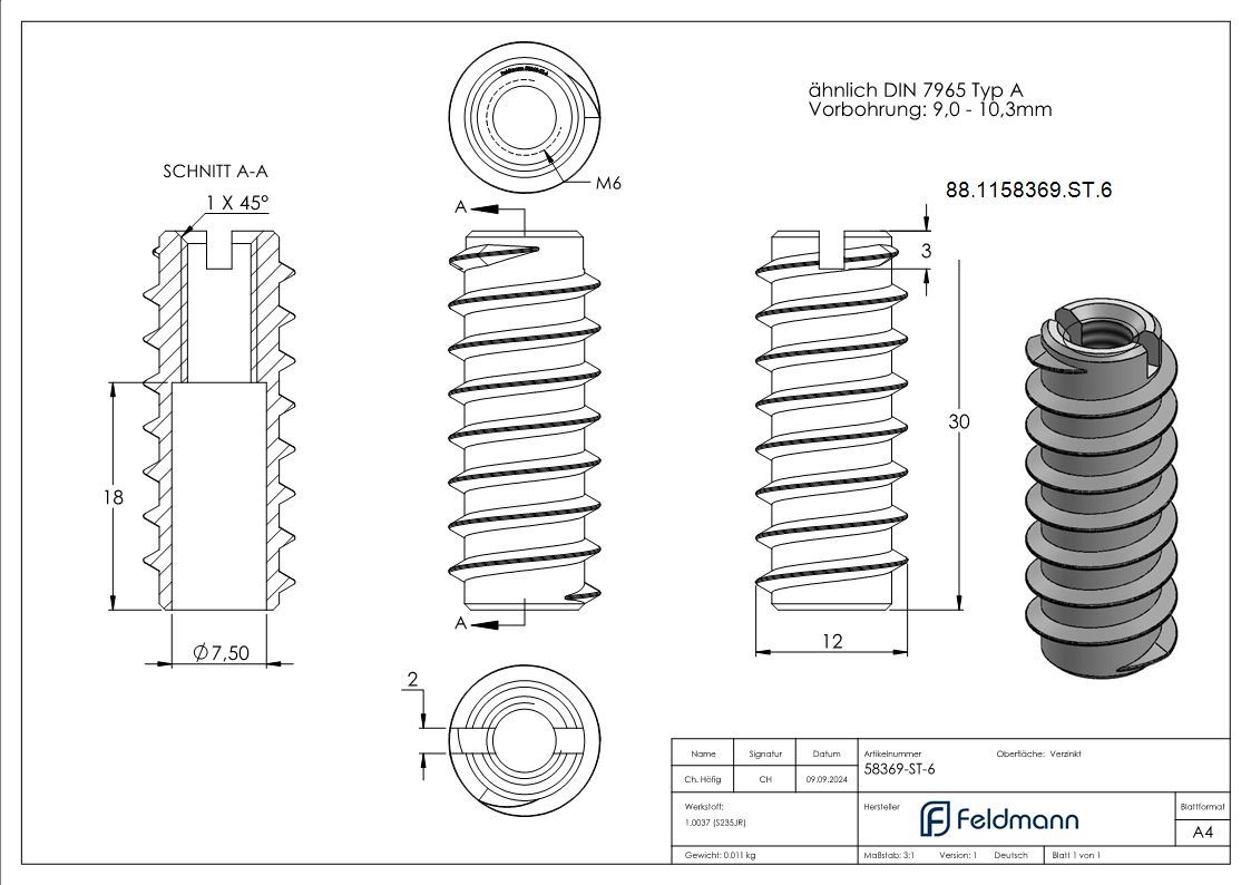 Rampa-Muffe M6 x 30, Stahl verzinkt