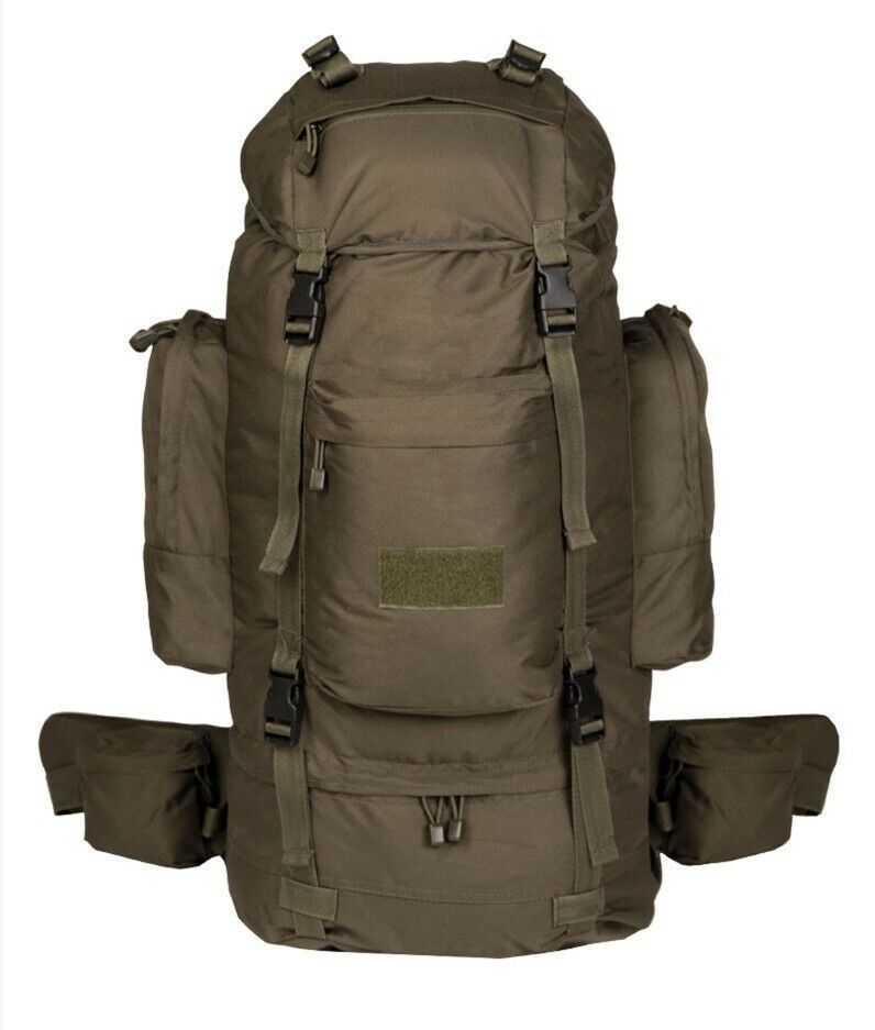 Ranger Rucksack Ranger Rucksack, neue Version. Großer Trekkingrucksack l ieferbar in oliv oder schwarz. 100% Polyester, Polyvinylchlorid beschichtet. Maße: 35 x 20 x 70 cm. Fassungsvermögen: ca. 75 Liter. - großes Hauptfach mit Kordelzug und Stopper - 3 Außentaschen - Fronttasche mit Klettstreifen z
