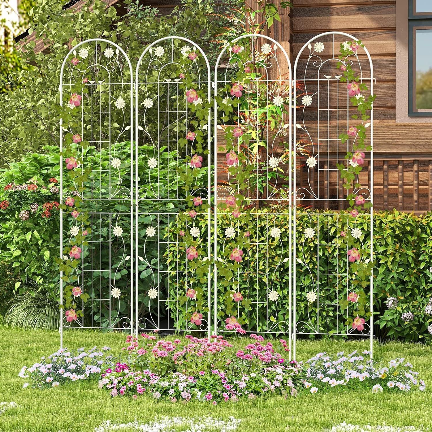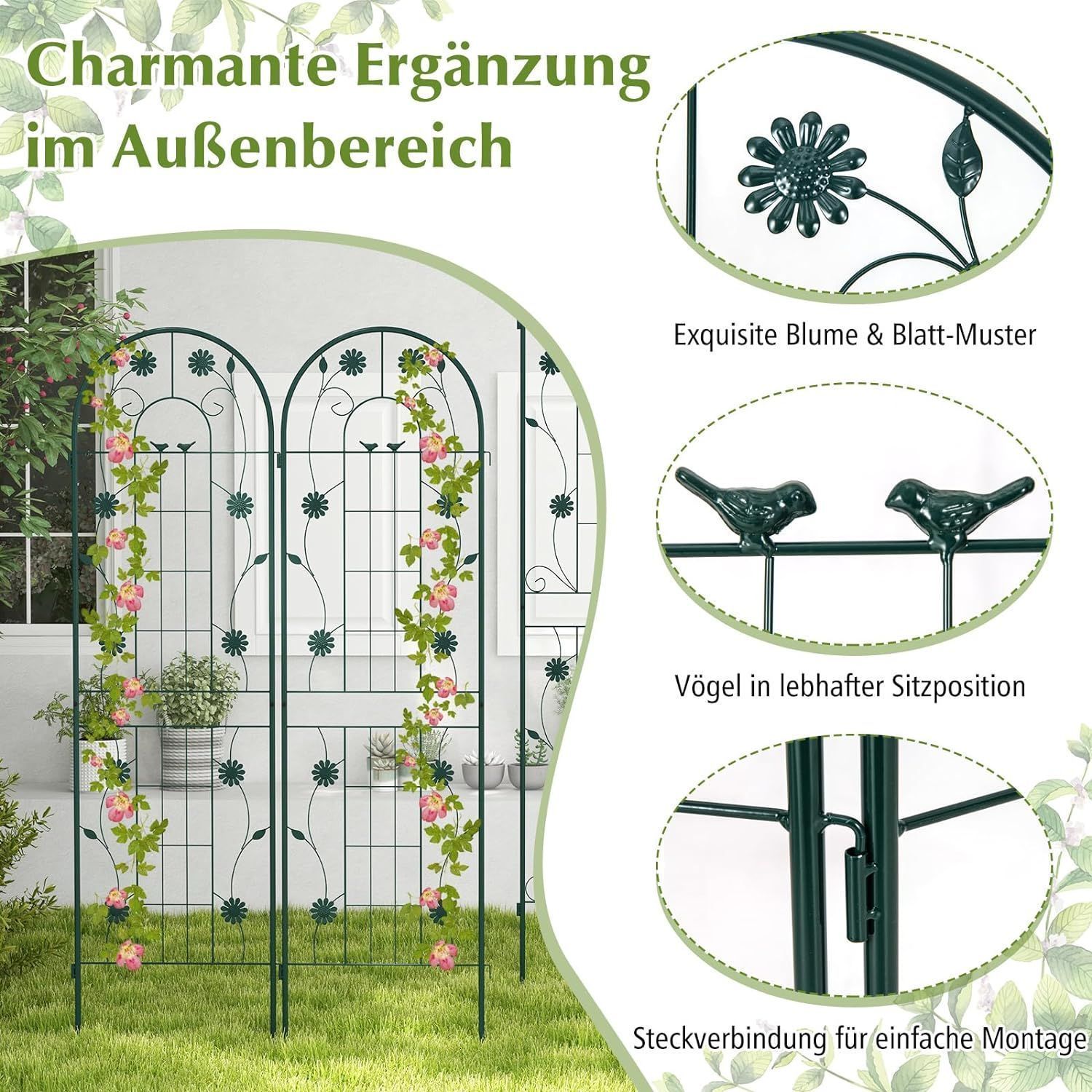 Rankgitter Metall, 2er Set, dekorativer Gartenzaun, freistehende Rankhilfe, Spalier