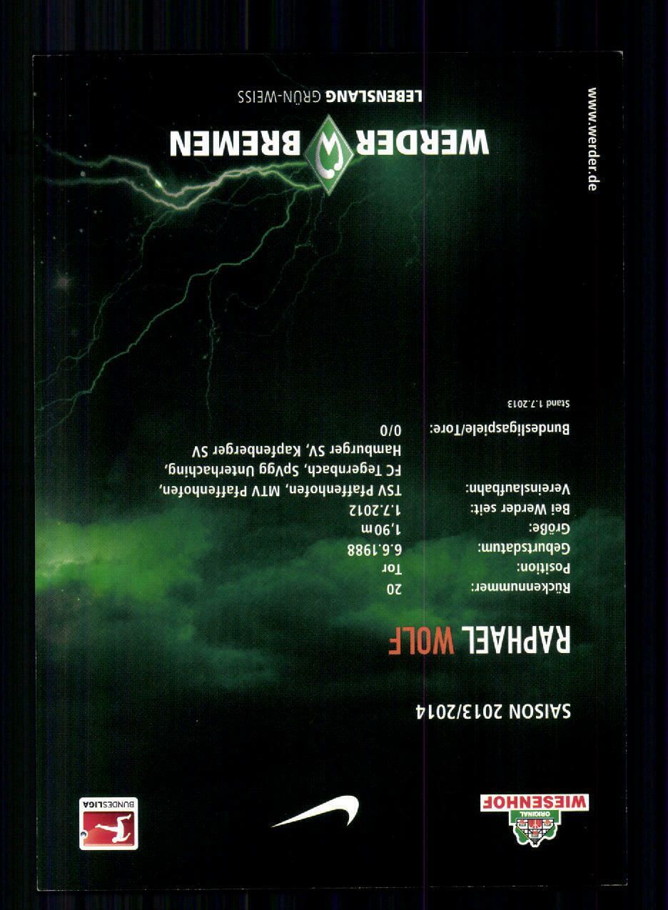 Raphael Wolf Autogrammkarte Werder Bremen 2013-14 Original Signiert