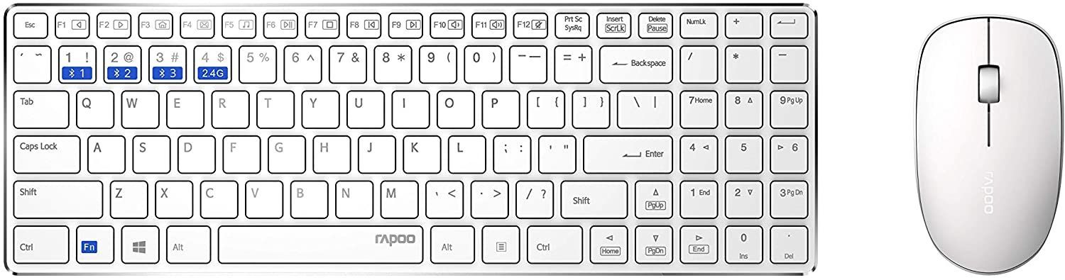 Rapoo Rapoo 9300M kabelloses Multi-Mode Deskset Tastatur & Maus weiß DE-Layout