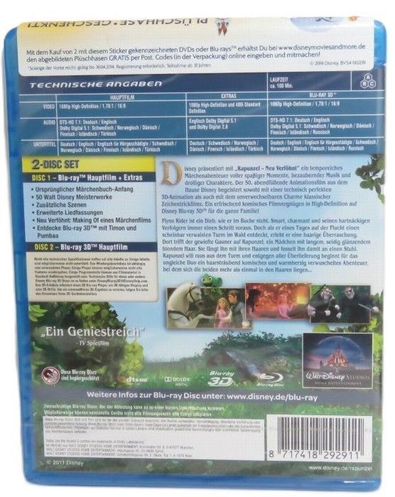 Rapunzel - Neu verföhnt - Walt Disney - 3D Blu-ray & Blu-ray - Originalverpackung