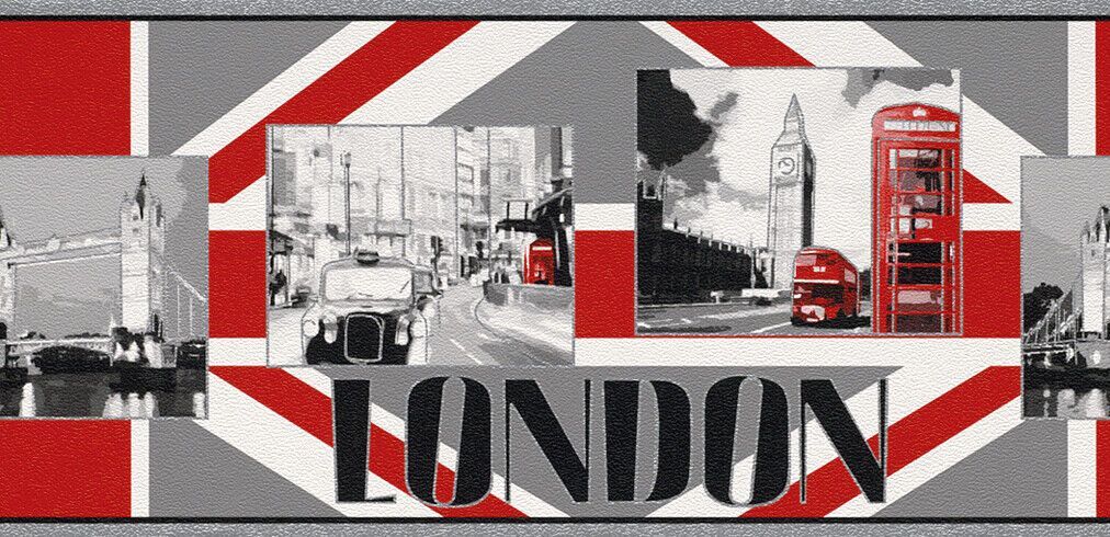 Rasch Rasch Bordüre 237702 Motiv London Grau, Rot, Weiß und Schwarz