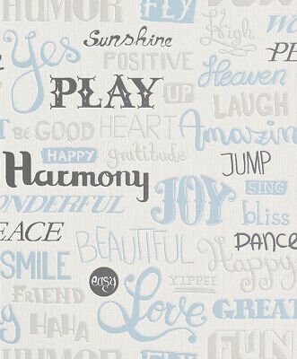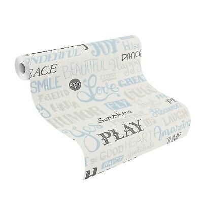 Rasch Rasch Tapete Vlies 886306 Love Smile Wörter Weiß hellblau Silbergrau Vliestapete