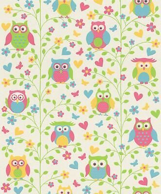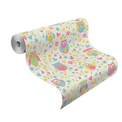 Rasch Rasch Tapete Vlies Bestseller 459104 Eulen Weiß Gelb Grün Pink Türkis Kinderzimmer
