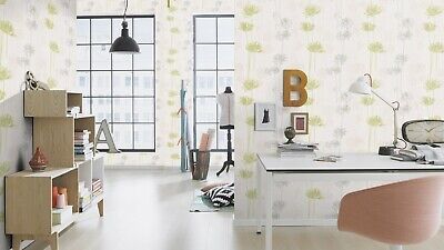 Rasch Rasch Tapete Vlies Selection 863734 Blumen Weiß Grün Grau Beige Floral stylisch