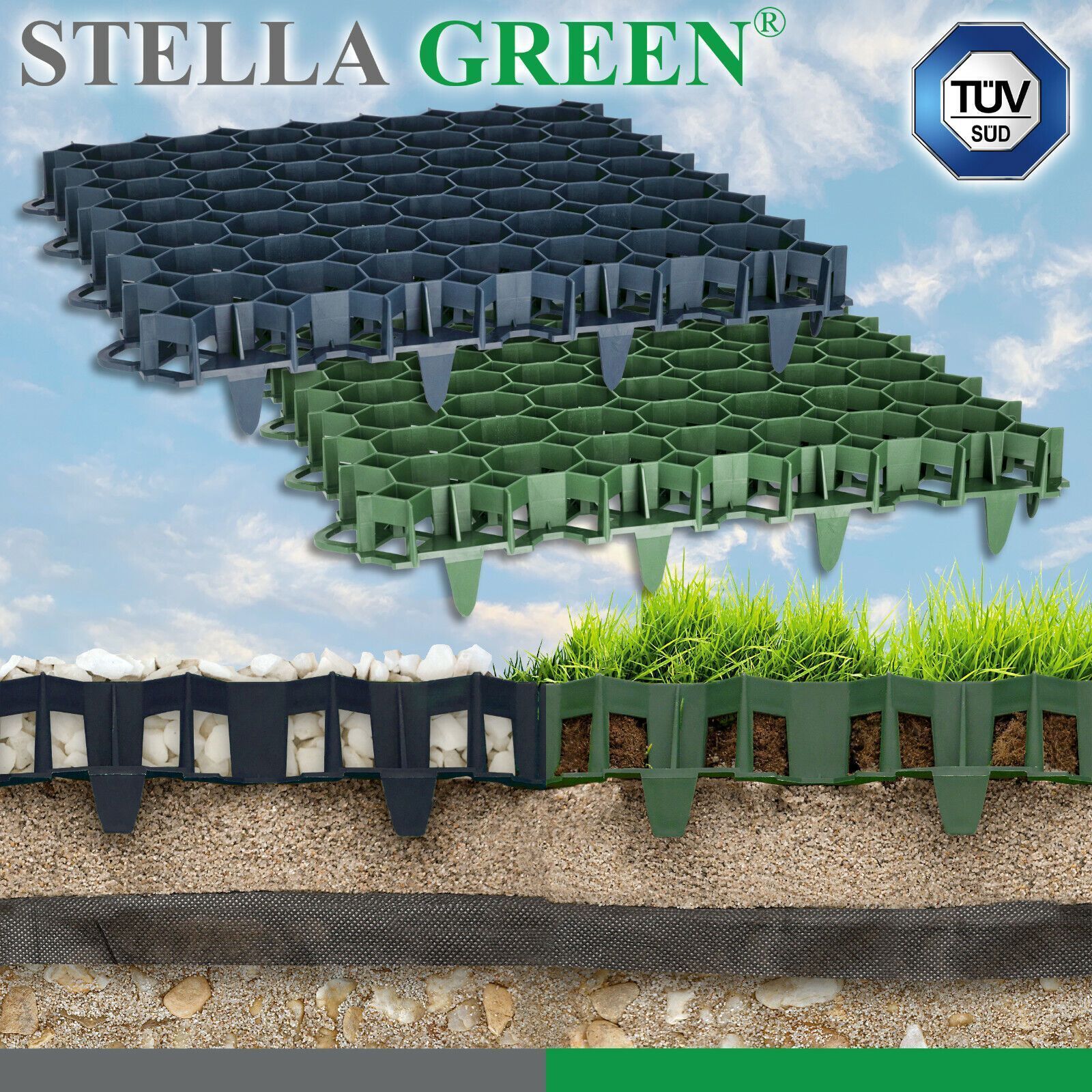 Rasengitter 50x50x4cm grün oder schwarz Gehwegplatte Rasenwabe Bodenwabe